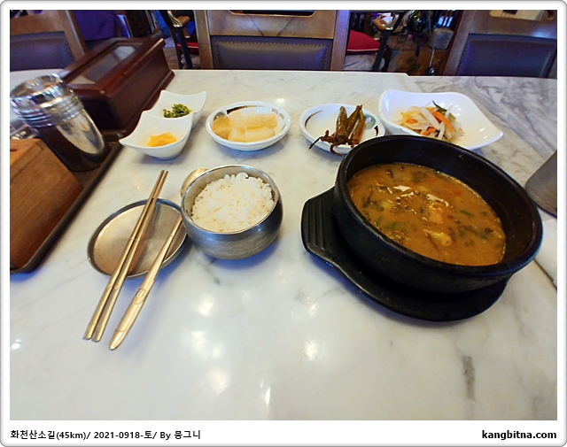 역시 화장실이 없어서 화천시장에 가서 화장실 이용하고 아침식사까지...
