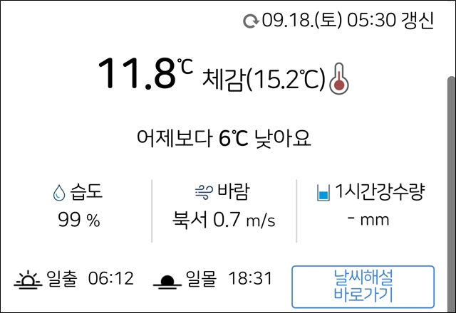 아침 날씨가 쌀쌀해 굳이 일찍 출발할 필요 없음
