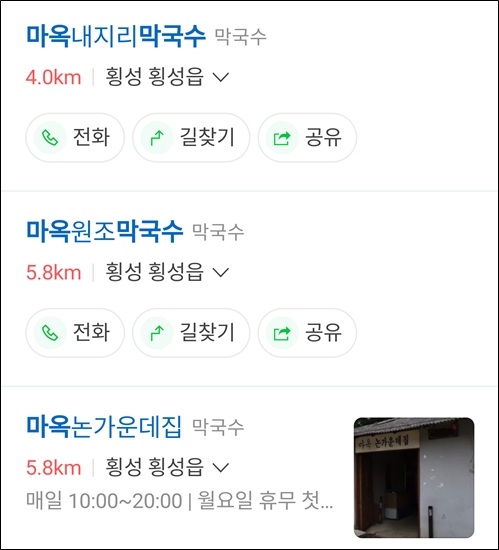 막국수 식당이 세 군데나 있다.