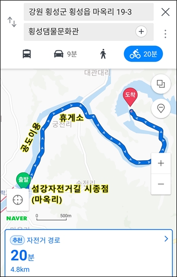 횡성댐까지 9km