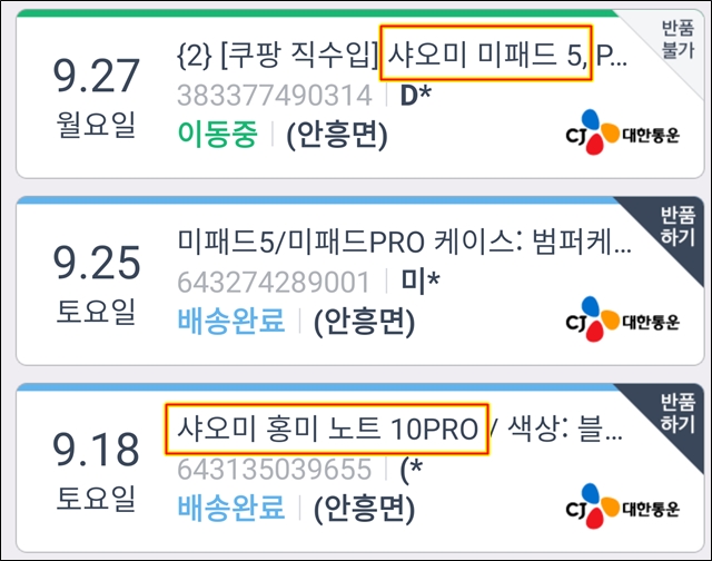 9월 23일 쿠팡을 통해