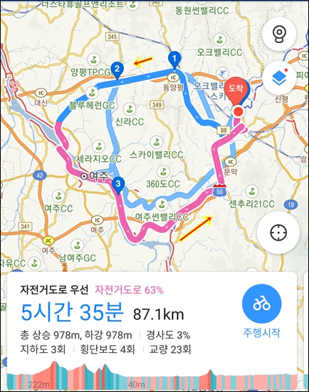 간현관광지에서 공도로 여주까지 가서 자전거길로