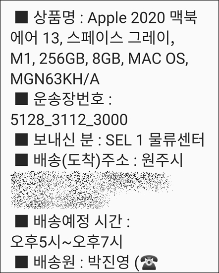 빛나는 맥북에어 배송오면 받은 후, 토요일 오전에 오기로 예정