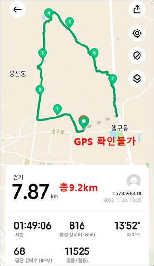 마지막 구간에 GPS가 제대로 연결되지 않은 듯