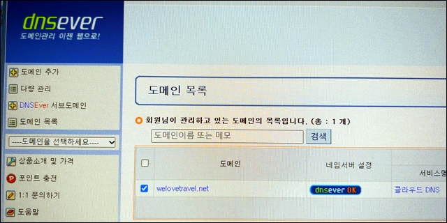 dnsever에서 강바다닷컴 삭제(월 1,100원)