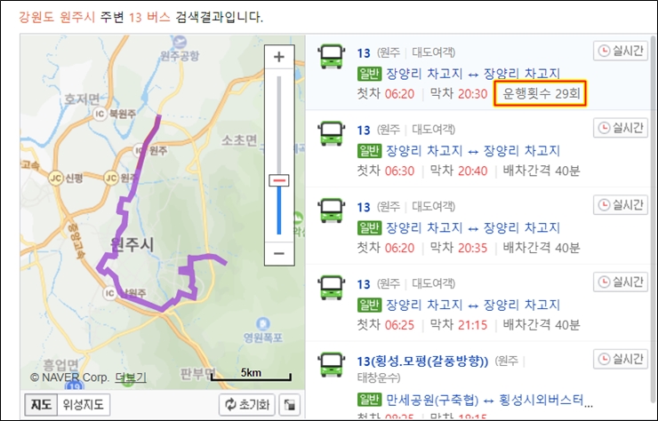 13번 버스는 무려 하루에 29회나 운행
