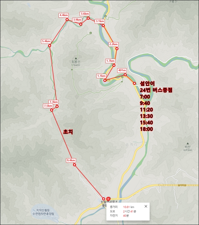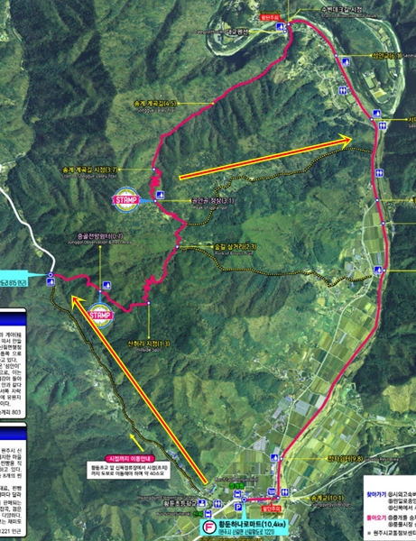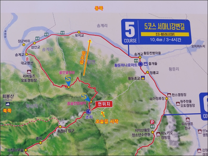 섬안이 버스종점까지 가서 황둔까지 걸어오는 코스