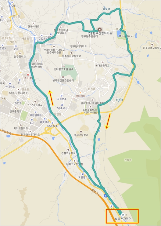 원주천을 따라 번개처럼 돌아옴