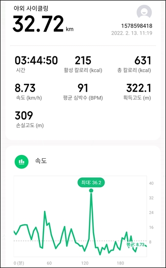 38km 정도 라이딩 한 것으로 확인.