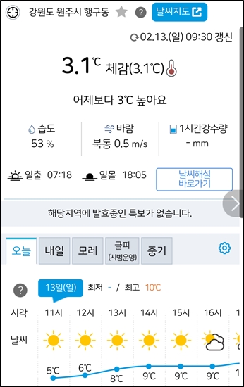 낮에 기온이 10도 가까이 올라감