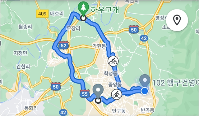 하우고개와 무실동 청년어부에서 길게 휴식