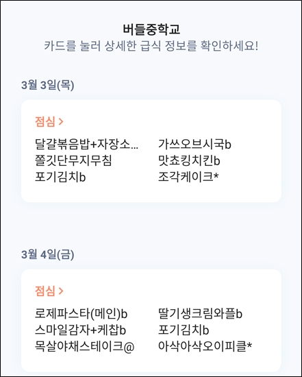 내일은 점심먹지 않고 돌아오고, 목요일부터 급식...