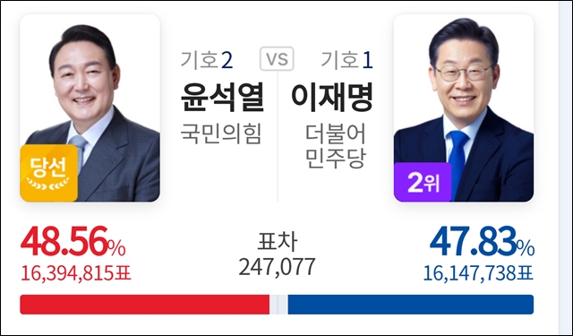 1,2등 표차보다 더 많은 표를 얻었다.