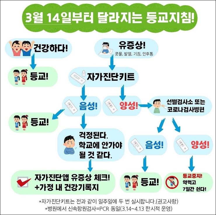 내일 등교하기 위하여 신속항원검사 실시 - 양성
