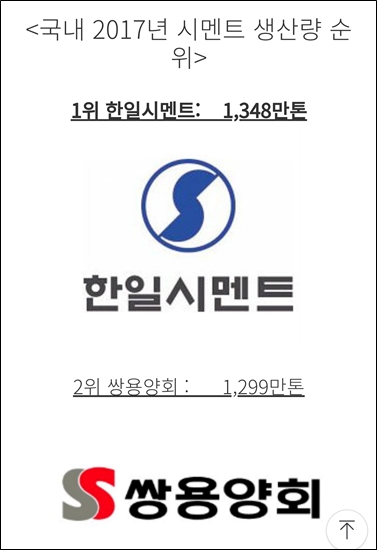 시멘트 회사 순위 top7 (한국시멘트협회 자료)