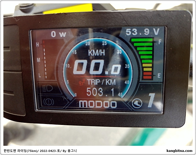 70km 조금 넘고 배터리 잡아먹는 고개는 두 군데 정도...