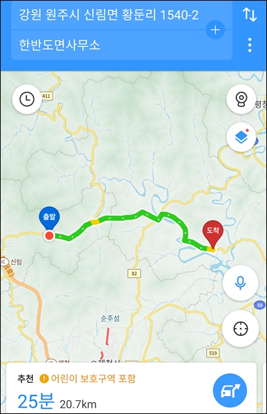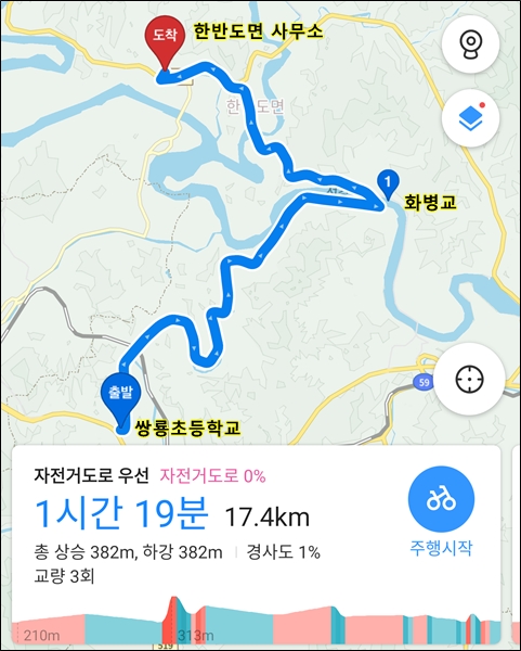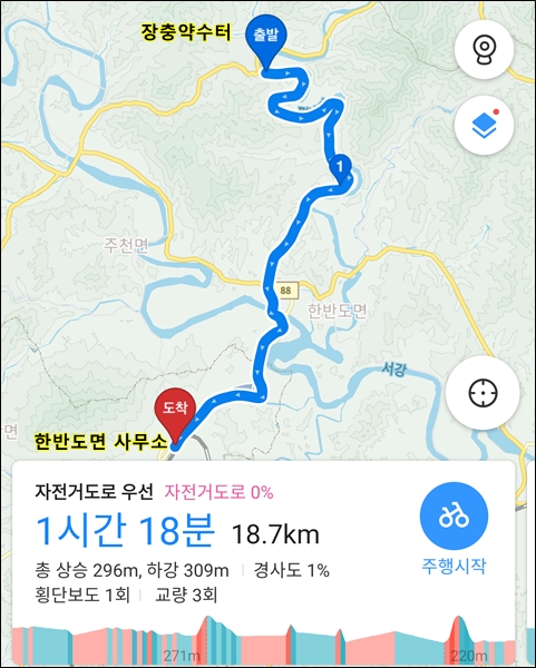 ->마지리->장충약수터->한반도면 사무소 코스로 돌면 된다.