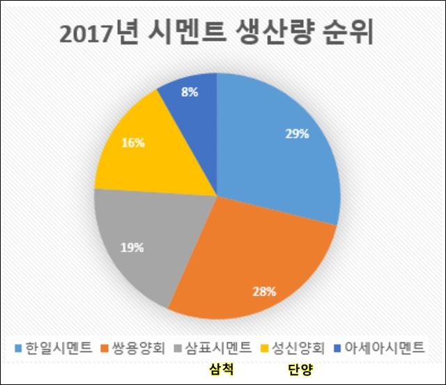 삼표는 삼척에 있고, 성신양회는 단양에 있다.