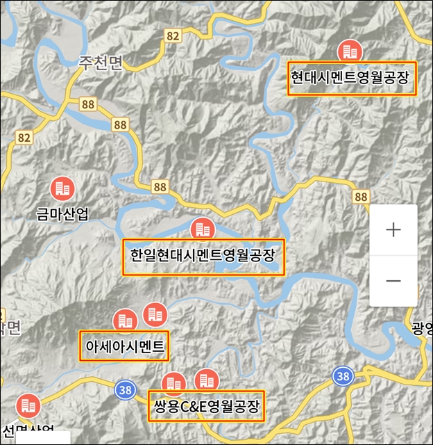 공장이 처음 세워졌을 때는 영월군 서면이었을 것 같은데...