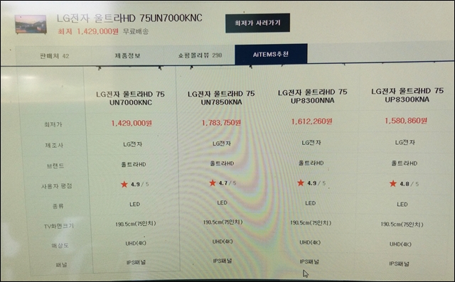 잠시 75인치 TV에 꽂혔다.