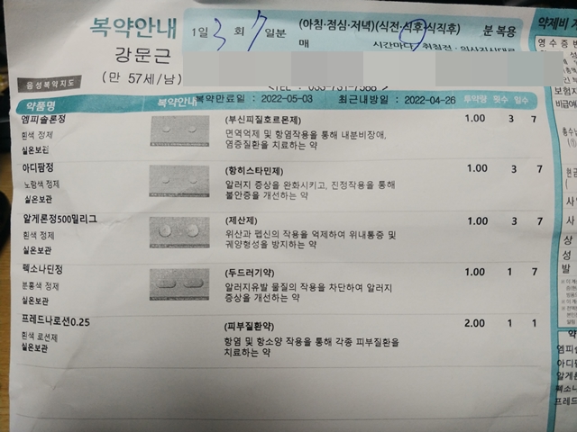 동네 내과와 시내 피부과를 들려 약을 처방하였으나 효과가 없음.