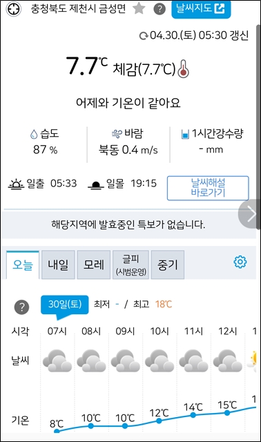 오후에 영서지방 약간의 비 예보도 있음.
