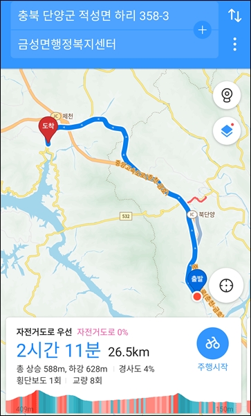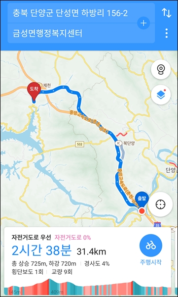 청풍대교까지 공사구간이 꽤 있고, 오르락내리락