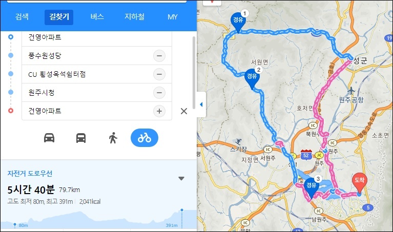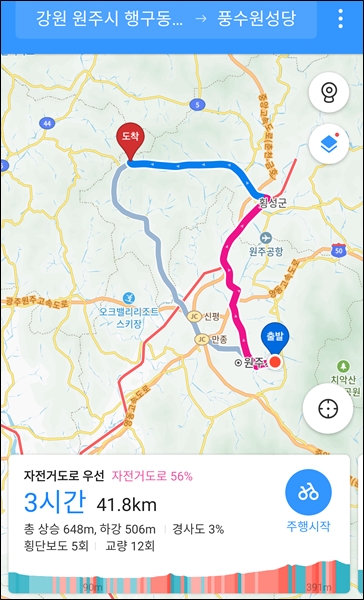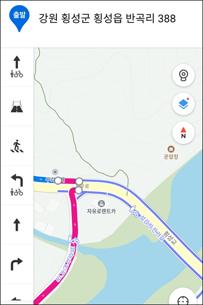 횡성교부터 카카오맵 자전거 주행 온.