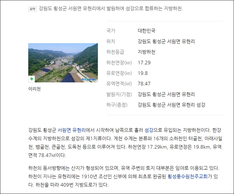 유현리에서부터 흘러내려오는 이리천이 엄청난 곡저평야를 만들었다.