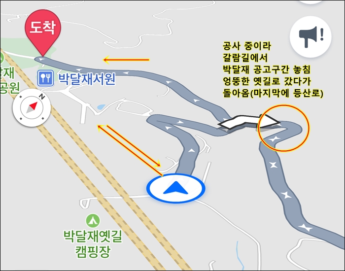 박달재 올라가는 옛공도 입구가 공사 중이라 갈림길에서