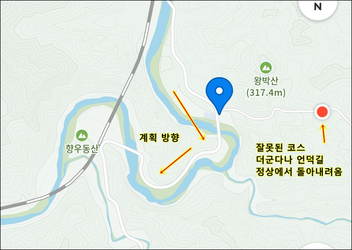 왕박산 고개마루까지 올라갔다 내려옴