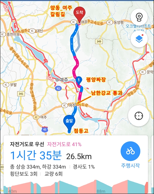 연앙천과 남한강 합류점까지 갔다가 강천보를 건너려고 했지만