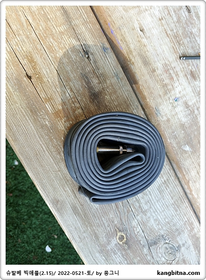 기존에 사용하던 튜브 이렇게 바람 뺄려면 노즐을 풀수 있는 장비 필요함.
