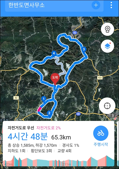 일부 구간 주천강을 따라서 달림