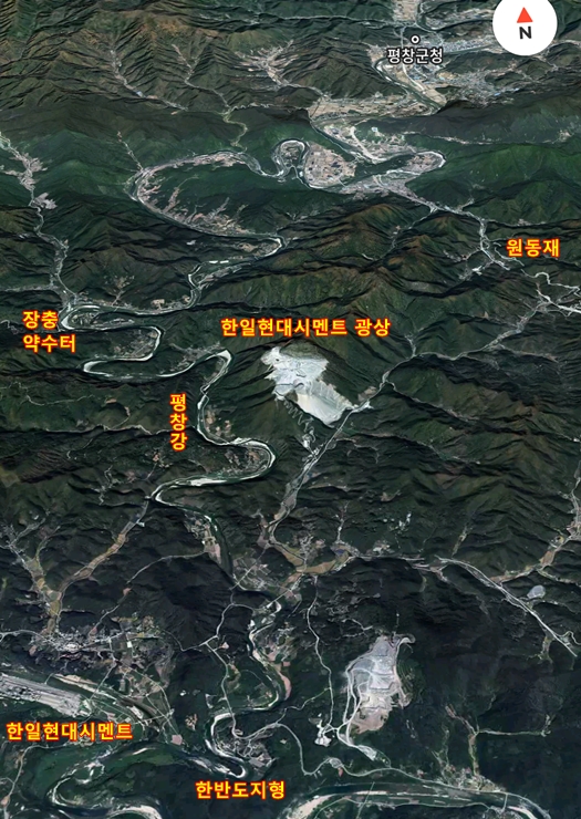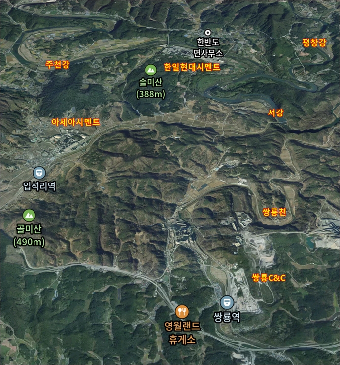 한일현대시멘트 진입로 다리에서 바려다본 주천강