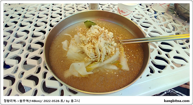 아침에 햇반이랑 참치, 열무김치 넣어서 비빔밥 먹고 갔는데