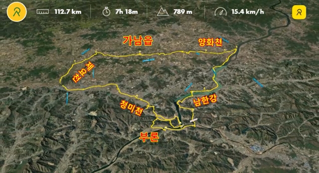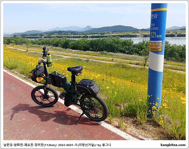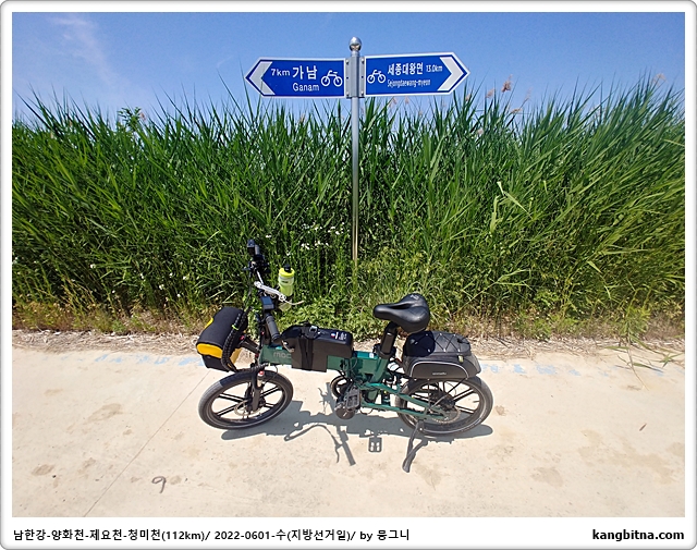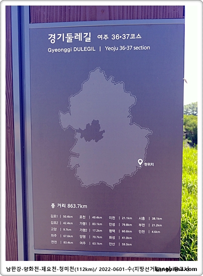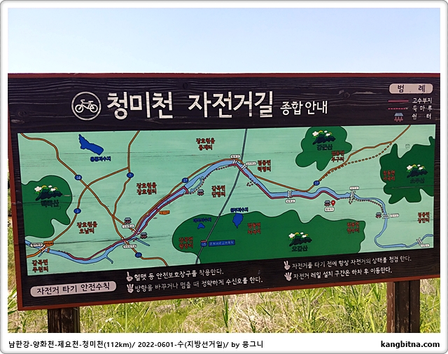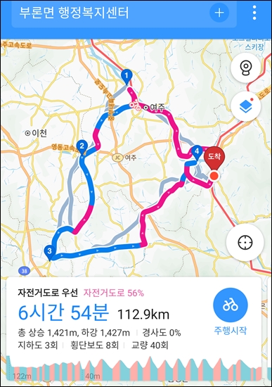 부론에서 출발하여 여주보-양화천-일죽터미널-청미천-도리섬-부론으로 코스 잡음