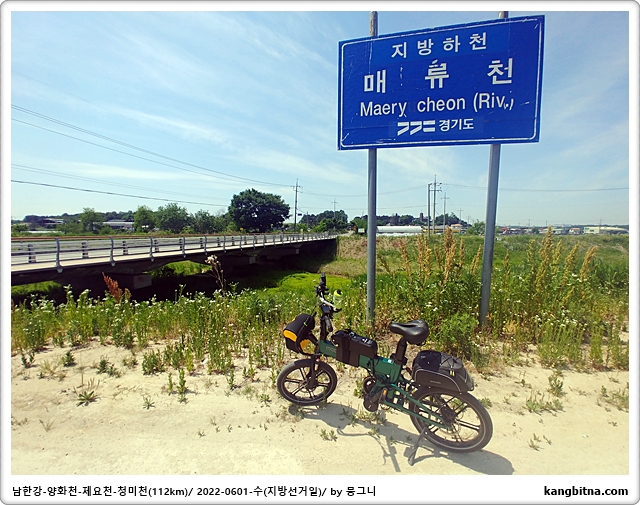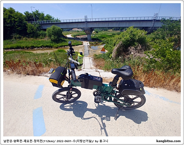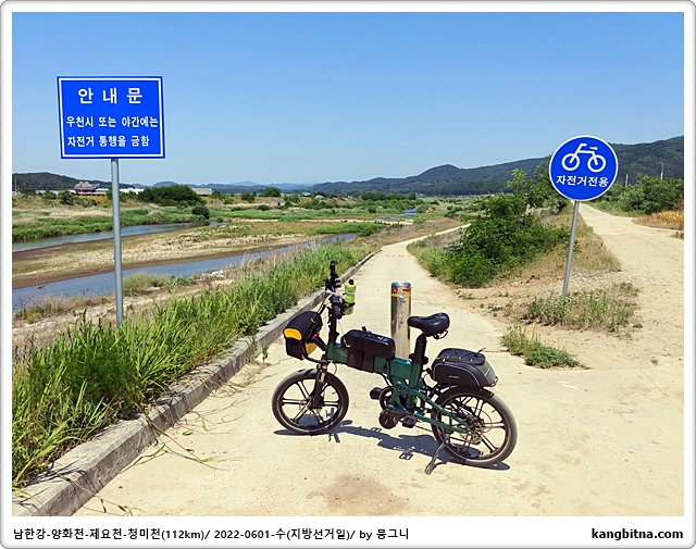 청미천에서 자전거전용 표지가 있으면 따라서 둔치로 내려가야함.