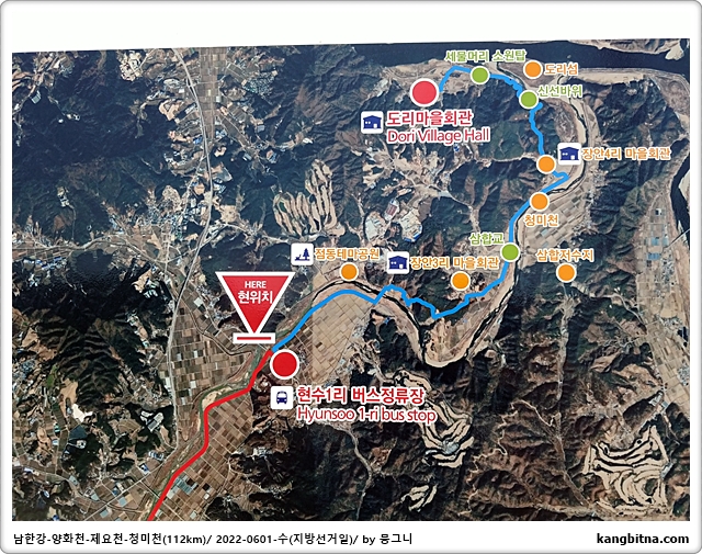 상류로 가면서 지천들이 나타나 헷갈림