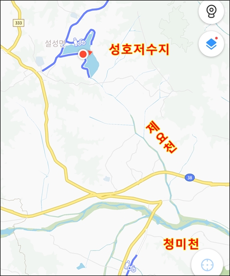 성호저수지에서 청미천까지 무난하게 진입