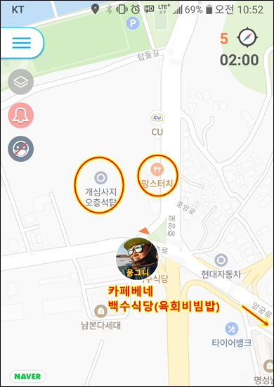 육회비빔밥 전문점 백수식당은 자전거 시야 확보가 어렵다.