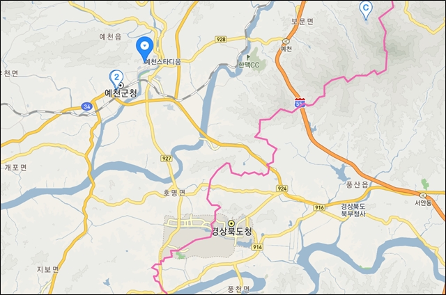 경북도청 신도시는 예천군과 안동시에 걸쳐 있으며