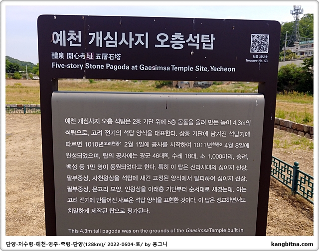 예천 읍내에 있는 개심사터 오층석탑 도착. 진입로에 아무런 안내가 없는 논 한 가운데 서 있어 찾는데 조금 헤맸다. 덕분에 예천 읍내를 걷게됨. 예천 읍내는 생각보다 작았다. 시가 아니라 딱