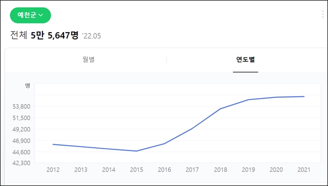 예천은 인구가 줄다가 경북도청이 옮겨오면서 회생