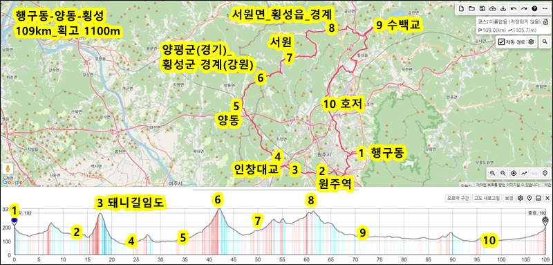 길이: 109.6km, 상승고도: 968m, Course edited by Ridingazua editor.
