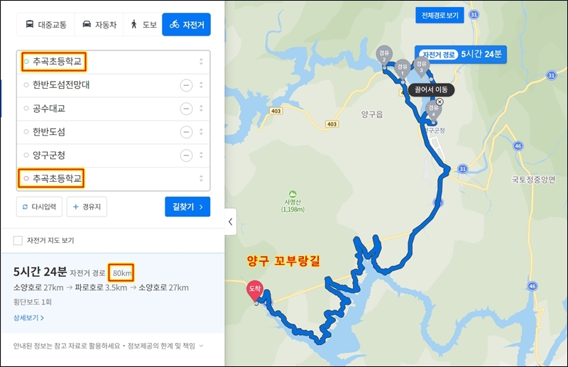 결국 거의 자전거길로 이루어짐