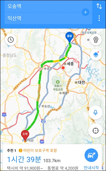 승용차로 가면 1시간 40분 걸리는 거리인데
