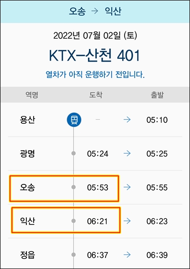 함께 붙어서 오다가 익산역에서 분리되어 401이 먼저 출발