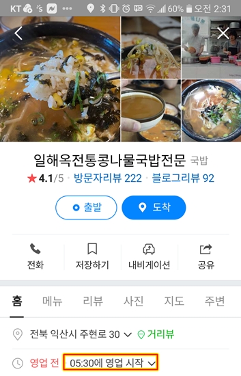 5시 반에 영업 시작