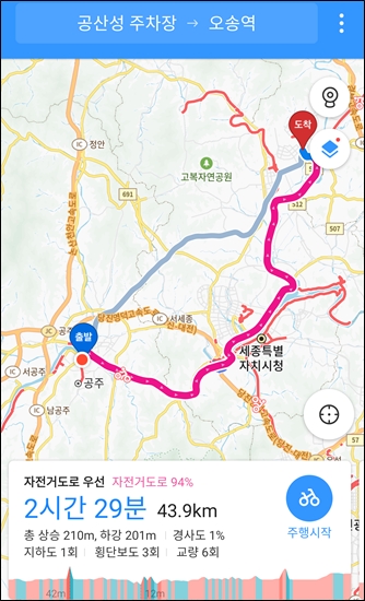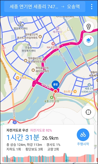 오송역으로 가는 길이 나옴